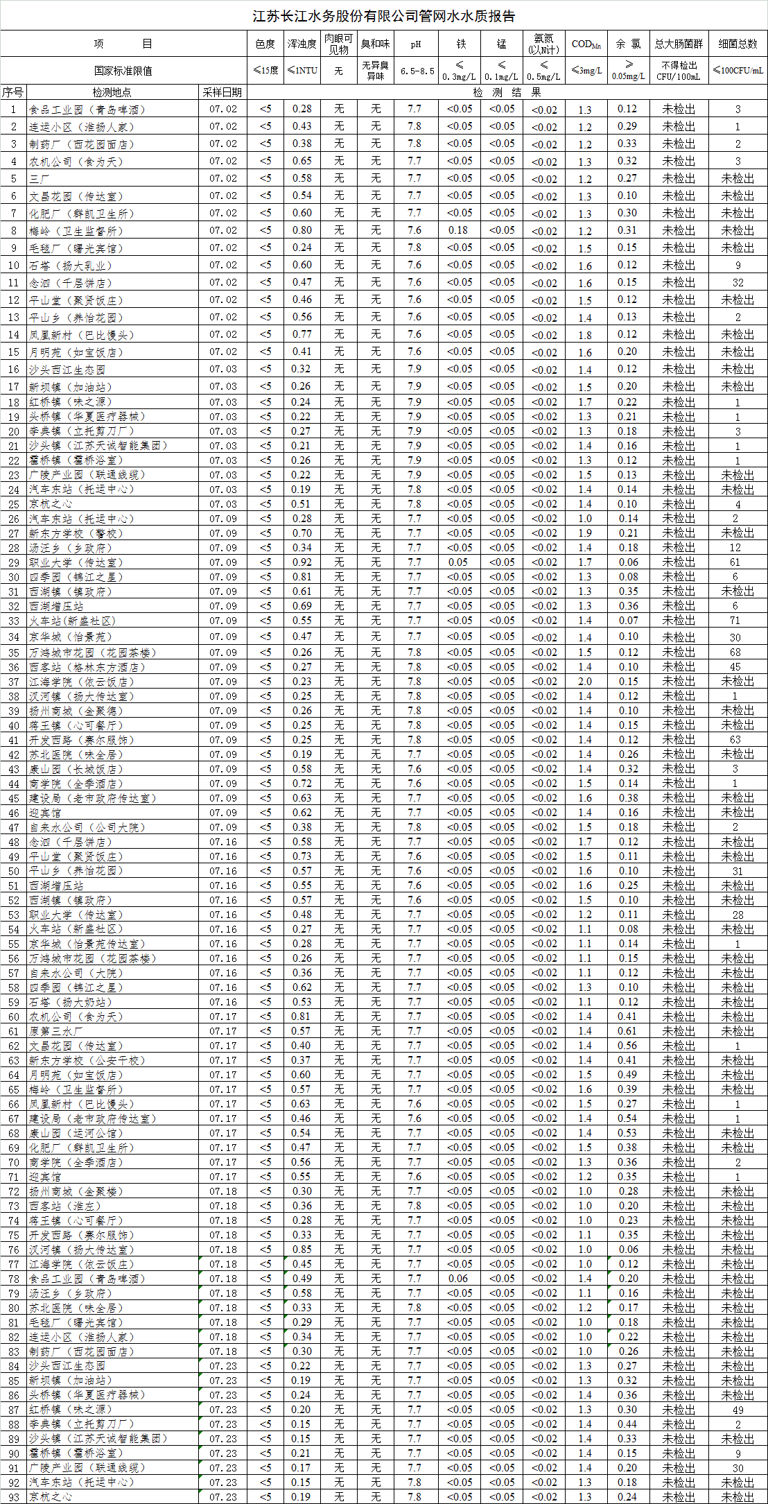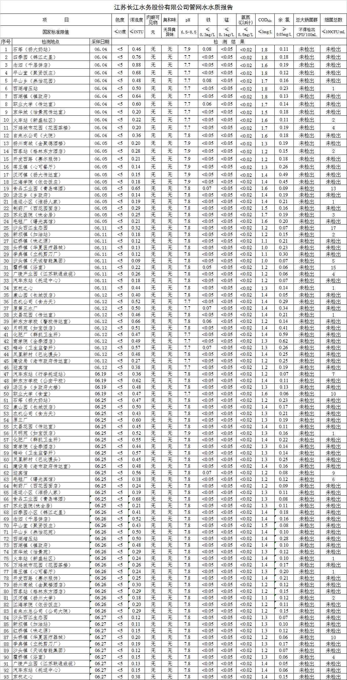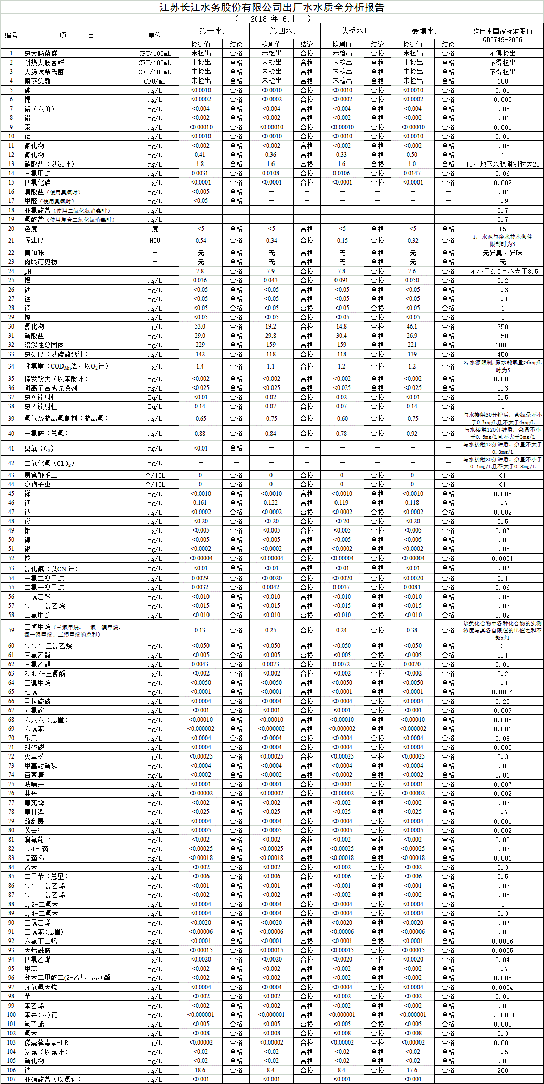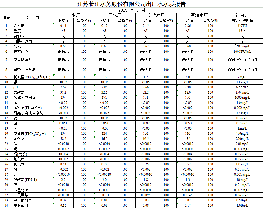 自來水水質(zhì)報(bào)告(2018年6月7月)