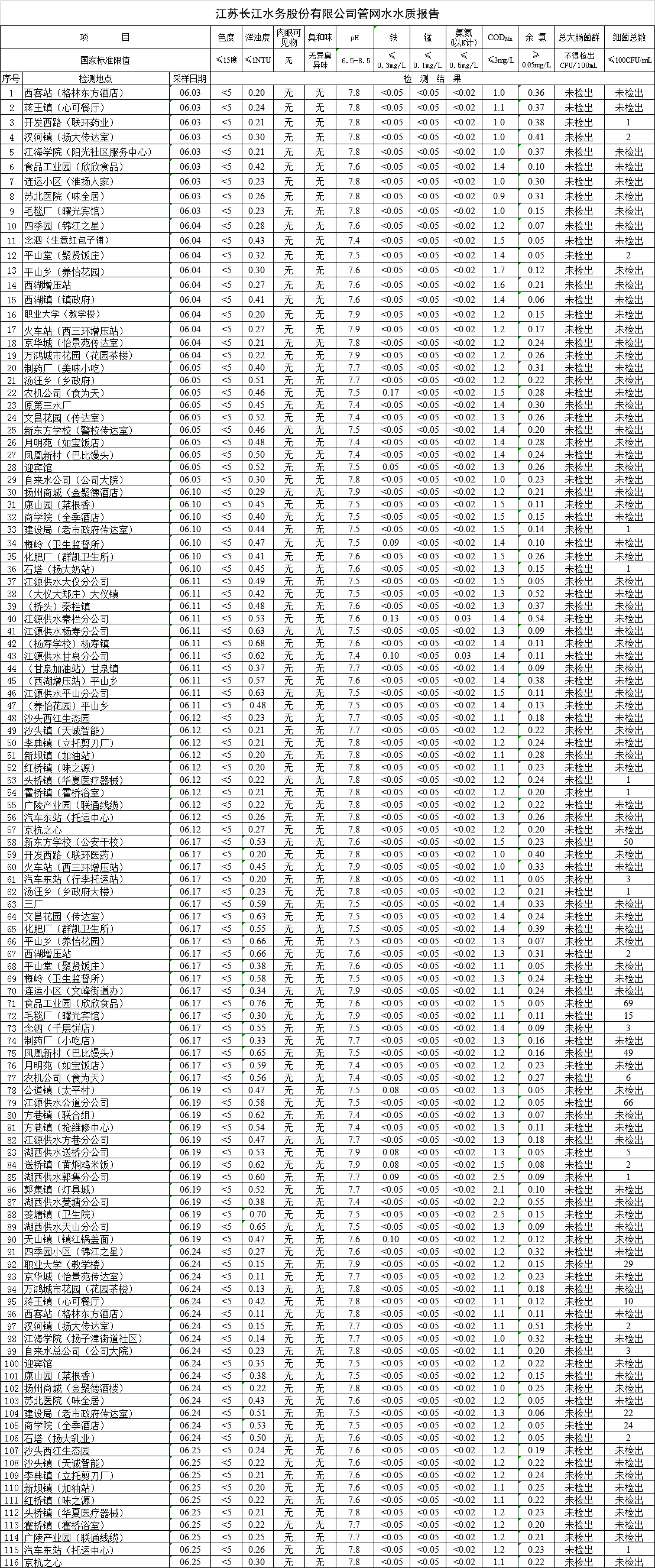 江蘇長(zhǎng)江水務(wù)股份有限公司管網(wǎng)水水質(zhì)報(bào)告(2019年6月)
