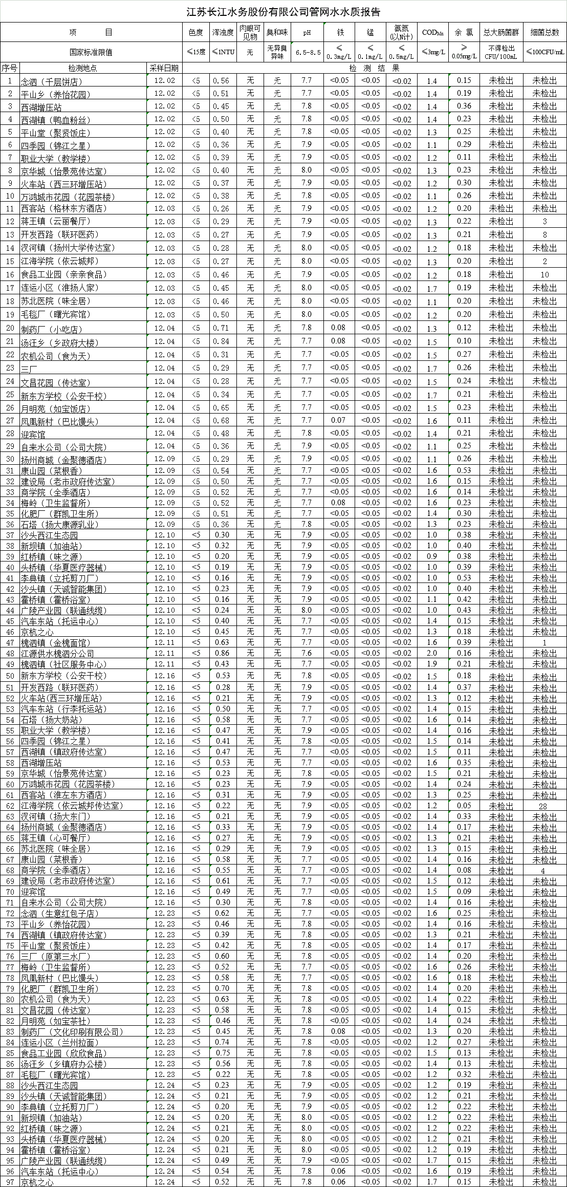 江蘇長(zhǎng)江水務(wù)股份有限公司管網(wǎng)水水質(zhì)報(bào)告(2019年12月)