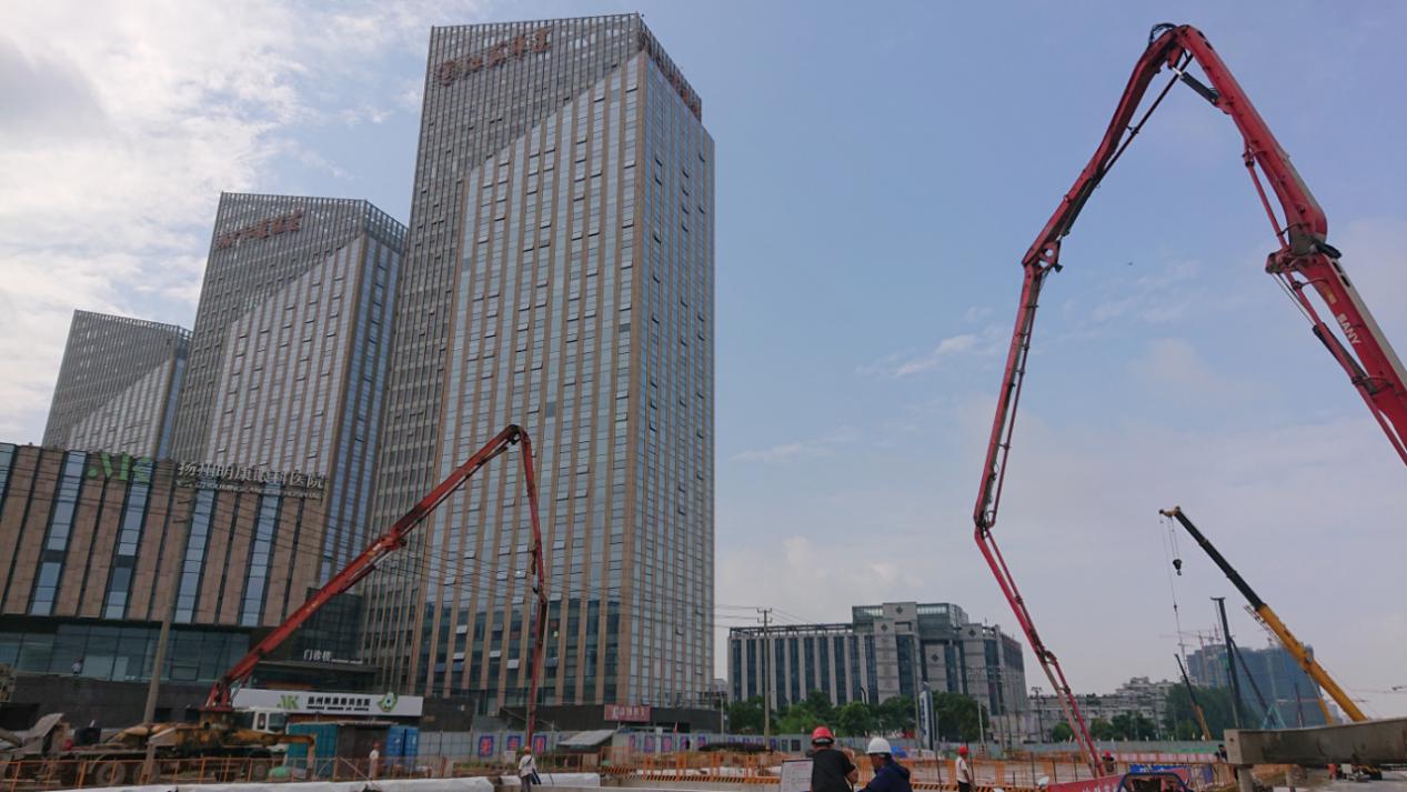 15時(shí)30分,第一輛混凝土車在文昌路南側(cè)敞開段施工現(xiàn)場外等候;15時(shí)40分,混凝土坍落度實(shí)驗(yàn)開始;15時(shí)43分,隨著一聲響亮的信號,兩輛泵車輸送管同時(shí)就位,文昌路隧道首段底板正式澆筑……
