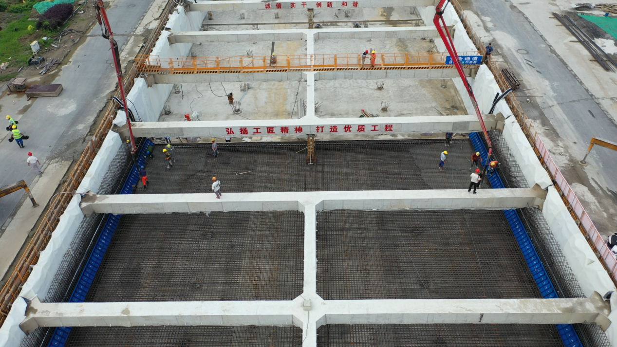 運(yùn)河南北路快速化改造工程文昌路隧道首段底板順利澆筑