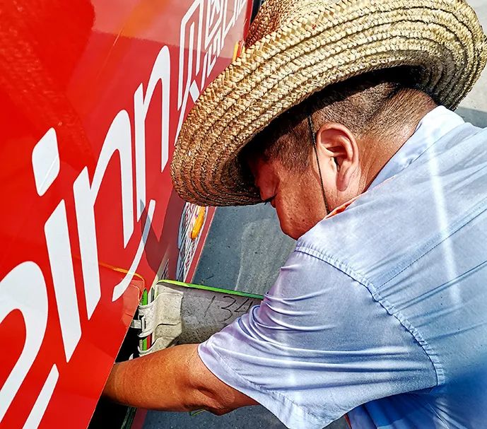 頭頂烈日,腳踏熱浪。溫度計顯示東站加氣島區(qū)域溫度達到53.1℃,這是揚州中燃9座加氣站中唯一沒有大棚的加氣站。打開公交車加氣嘴箱門的瞬間,令人窒息的熱浪撲面而來,加氣工濕透的衣衫,猶如泡在汗水中,汗珠掛在臉上、流進眼里。