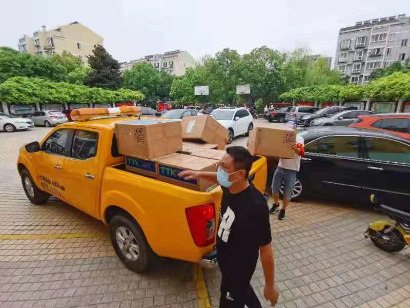 眾人拾柴火焰高。8月12日上午,第一批愛(ài)心防疫物資防護(hù)服500套、面罩200個(gè)、N95口罩500只、酒精4箱全部采購(gòu)到位。下午,一輛滿載防疫物資的皮卡從管網(wǎng)公司出發(fā),駛向曲江新苑社區(qū),第一時(shí)間將這批一線急需的愛(ài)心防疫物資送到了社區(qū)工作人員手中。
