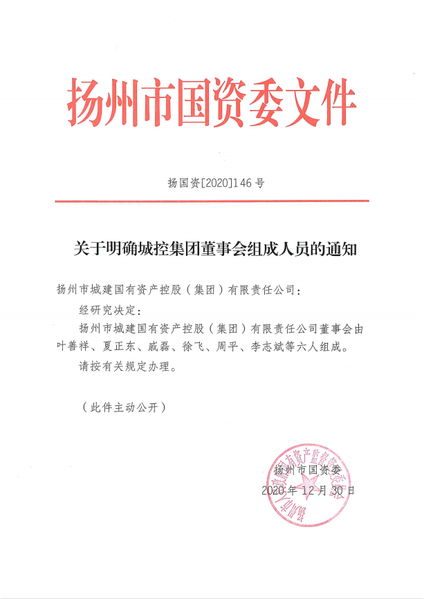 關(guān)于明確城控集團(tuán)董事會(huì)組成人員的通知