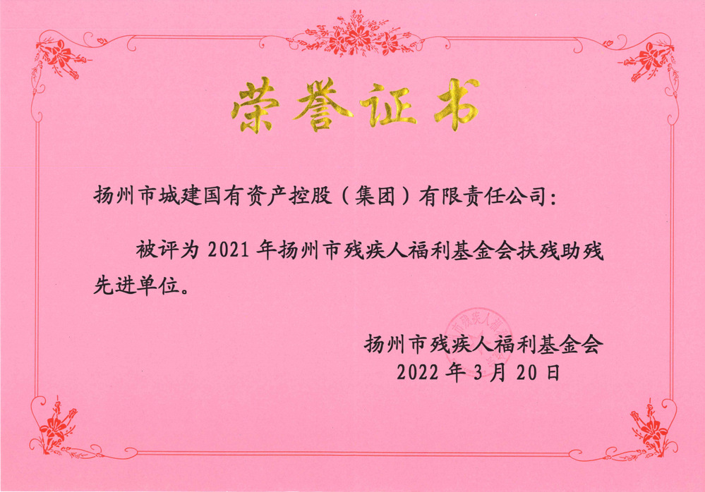 2021年揚(yáng)州市殘疾人福利基金會(huì)扶殘助殘先進(jìn)單位