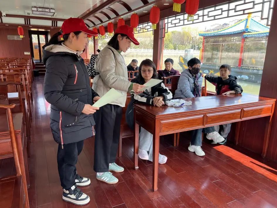 3月19日下午,志愿者們?cè)缭鐏淼酱a頭,登上游船向游客發(fā)放宣傳資料,詳細(xì)介紹“世界水日”的由來、意義和節(jié)約用水的重要性,呼吁大家關(guān)注水資源保護(hù)。同時(shí),志愿者們深入講解了古運(yùn)河的歷史文化,讓游客們?cè)谛蕾p美景的同時(shí),感受到古運(yùn)河的獨(dú)特魅力。志愿者們還手持垃圾鉗、垃圾袋,沿著河岸,仔細(xì)清理河面上的漂浮物和岸邊的垃圾,他們的行動(dòng)不僅美化了河道環(huán)境,也為周邊居民樹立了榜樣。