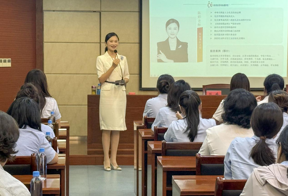 本次培訓(xùn)采用“理論+案例+情景模擬”的沉浸式教學(xué)模式,特邀禮儀中國江蘇揚州總負(fù)責(zé)人陳婷老師授課。培訓(xùn)以“服務(wù)溝通技巧與文明用語”為主題,聚焦窗口服務(wù)場景,涵蓋服務(wù)體驗三層重構(gòu)、微服務(wù)溝通精煉、心體驗實戰(zhàn)沙盤等三個部分。理論教學(xué)環(huán)節(jié),陳老師系統(tǒng)講解了服務(wù)過程中文明用語標(biāo)準(zhǔn)、行為舉止要領(lǐng)等,通過實際案例分享共情思維與溝通技巧,幫助參訓(xùn)人員提高服務(wù)對象接待、服務(wù)矛盾化解等實務(wù)能力。情景模擬環(huán)節(jié),參訓(xùn)人員現(xiàn)場實踐服務(wù)用語,通過強化標(biāo)準(zhǔn)化服務(wù)意識和服務(wù)能力來提升用戶體驗。培訓(xùn)現(xiàn)場學(xué)習(xí)氛圍濃厚、互動氣氛熱烈。