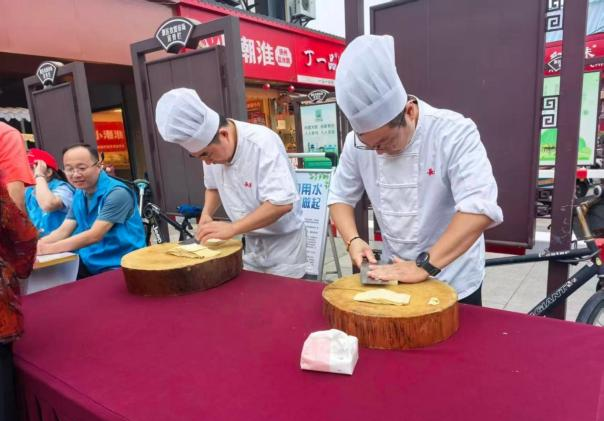 活動(dòng)現(xiàn)場(chǎng),來(lái)自城控集團(tuán)下屬市民卡公司、揚(yáng)州中燃、長(zhǎng)江水務(wù)、供熱公司及名城公司的多支志愿服務(wù)隊(duì)早早準(zhǔn)備就緒,通過(guò)設(shè)立咨詢(xún)臺(tái)、懸掛展板、發(fā)放宣傳冊(cè)和便民禮品等方式,為社區(qū)居民帶來(lái)了一場(chǎng)“零距離”的貼心服務(wù)。市民卡公司“e飛揚(yáng)”志愿服務(wù)隊(duì)現(xiàn)場(chǎng)演示了市民卡充值、水氣線上繳費(fèi)與過(guò)戶(hù)等操作,推動(dòng)服務(wù)“掌上辦”;揚(yáng)州中燃的志愿者們不僅發(fā)放安全手冊(cè),講解用氣知識(shí),更提供了免費(fèi)的上門(mén)燃?xì)獍矙z服務(wù),筑牢安全防線;長(zhǎng)江水務(wù)的工作人員耐心解答水壓、水費(fèi)疑問(wèn),并為有需求的居民登記上門(mén)檢查,切實(shí)解決用水煩惱;供熱公司積極宣傳供暖知識(shí)與垃圾分類(lèi)常識(shí),倡導(dǎo)綠色生活;名城公司長(zhǎng)樂(lè)客棧的廚師們則亮出絕活,現(xiàn)場(chǎng)免費(fèi)切干絲,展現(xiàn)了“揚(yáng)州工匠”的親民風(fēng)采,將活動(dòng)氣氛推向高潮。