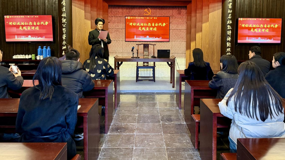 活動(dòng)中,揚(yáng)州大學(xué)音樂(lè)學(xué)院本科生黨支部的同學(xué)以《講好運(yùn)河紅色音樂(lè)故事》為題開(kāi)展思政課分享。圍繞運(yùn)河文化中的紅色基因,結(jié)合音樂(lè)專業(yè)特色,通過(guò)經(jīng)典紅色歌曲賞析、運(yùn)河紅色故事解讀、音樂(lè)文化傳承實(shí)踐分享等形式,生動(dòng)展現(xiàn)了紅色音樂(lè)與運(yùn)河文脈的深厚聯(lián)結(jié)。整場(chǎng)思政課內(nèi)容豐富、感染力強(qiáng),實(shí)現(xiàn)了黨性教育與專業(yè)交流的有機(jī)融合。此次“音樂(lè)+黨建”的創(chuàng)新形式獲得了雙方一致認(rèn)可,后續(xù)雙方將進(jìn)一步探索其應(yīng)用場(chǎng)景,計(jì)劃將該形式植入阮家祠堂家風(fēng)研學(xué)活動(dòng)中,讓研學(xué)參與者在紅色音樂(lè)的浸潤(rùn)與家風(fēng)文化的熏陶中,深化對(duì)黨性修養(yǎng)與文化傳承的理解,推動(dòng)校企合作在研學(xué)領(lǐng)域持續(xù)走深走實(shí)。