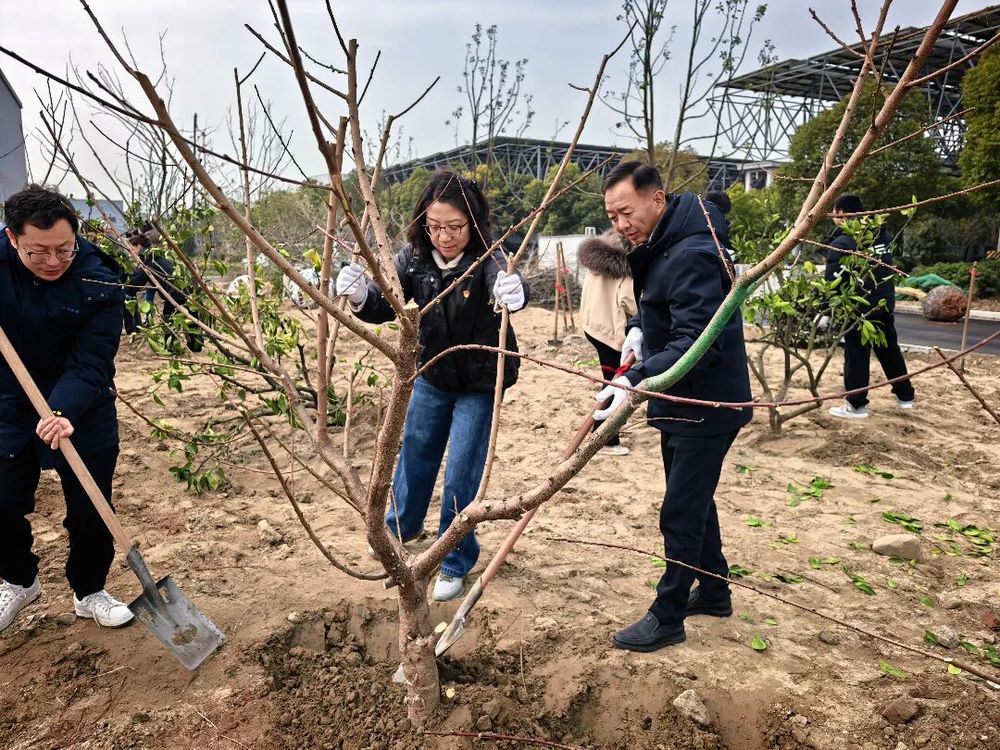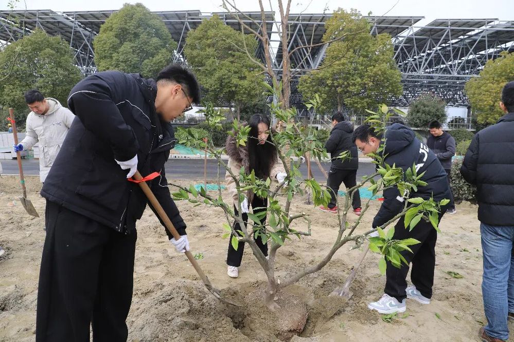 隨后,工作人員詳細(xì)講解了苗木種植要點(diǎn)、現(xiàn)場(chǎng)安全注意事項(xiàng)及分組安排,在領(lǐng)取鐵鍬、水桶、手套等工具后,大家迅速投入植樹(shù)作業(yè),扶苗、填土、壓實(shí)、澆水,每一個(gè)環(huán)節(jié)大家都配合默契、一絲不茍,保證每一棵桃樹(shù)苗都能規(guī)范栽種、落地生根,36棵苗木很快在六圩污水處理廠的土地上整齊挺立,為廠區(qū)增添了一抹盎然春意。