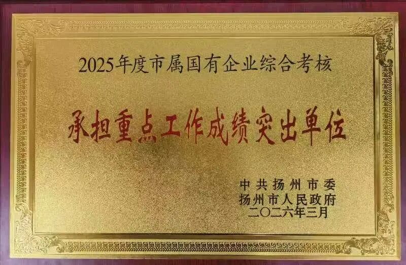 3月21日下午,揚(yáng)州市委、市政府召開(kāi)2025年度高質(zhì)量發(fā)展總結(jié)暨2026年工作推進(jìn)會(huì)議,通報(bào)了全市市級(jí)機(jī)關(guān)單位2025年度綜合考核結(jié)果并進(jìn)行表彰,揚(yáng)州城控集團(tuán)被評(píng)為2025年度市屬國(guó)有企業(yè)綜合考核“承擔(dān)重點(diǎn)工作成績(jī)突出單位”。