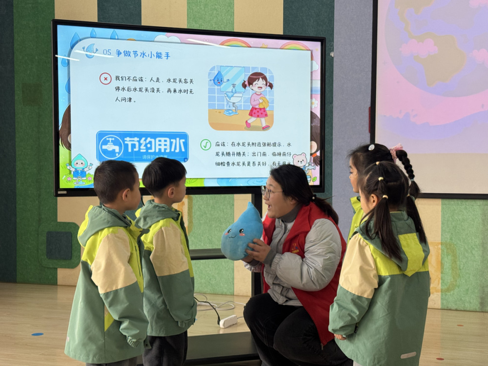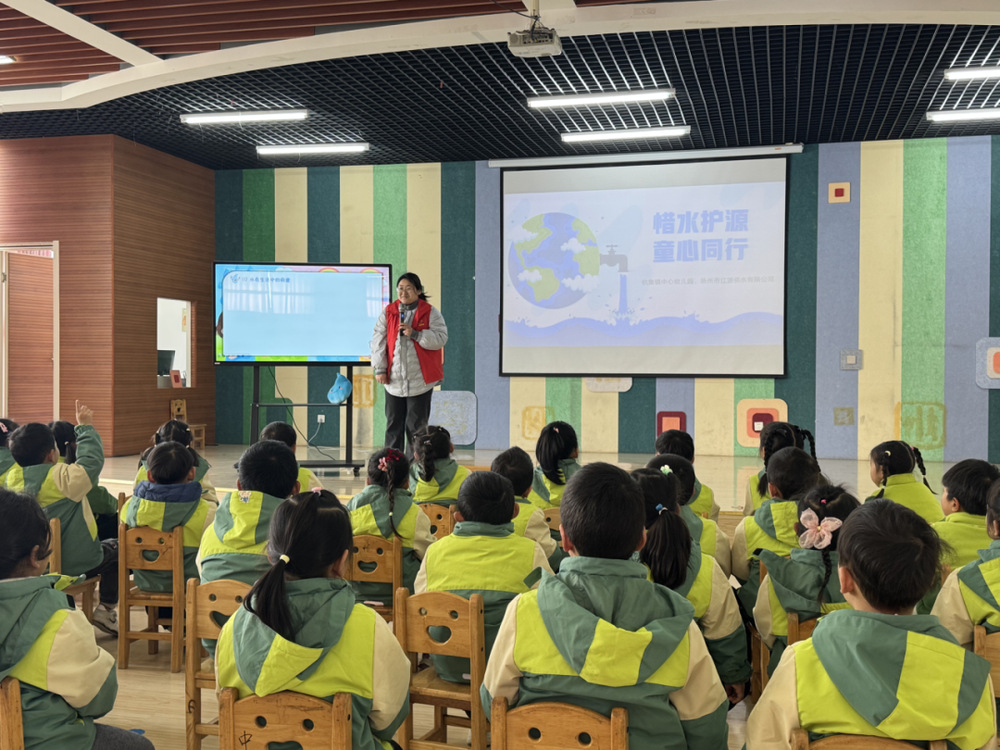 3月20日上午,561供水服務(wù)隊走進(jìn)杭集鎮(zhèn)幼兒園,開展“惜水護(hù)源,童心同行”用水節(jié)水知識小課堂,為孩子們帶來生動有趣的節(jié)水啟蒙課。課堂上,隊長吳留毅用趣味圖文PPT形式,通俗講解水資源現(xiàn)狀、節(jié)約用水小常識,通過“一水多用”互動問答,引導(dǎo)孩子思考節(jié)水意義,培養(yǎng)節(jié)水護(hù)水好習(xí)慣。