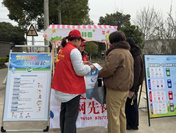 下午,志愿者們奔赴李典鎮(zhèn)田橋村黨員微家廣場,開展“春鋒送暖,共護(hù)青綠”環(huán)保便民市集活動,將節(jié)水護(hù)水服務(wù)送到村民家門口?;顒蝇F(xiàn)場,志愿者搭建宣傳展臺,擺放節(jié)水宣傳戧牌,發(fā)放《供水服務(wù)指南》手冊,用通俗易懂的語言講解世界水日意義和日常節(jié)水妙招。