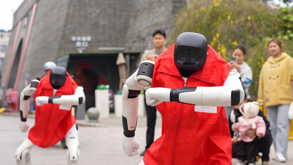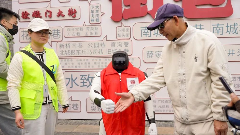 除了趣味表演,兩款機(jī)器人還承擔(dān)著智能引導(dǎo)職責(zé)。機(jī)器狗模擬動(dòng)態(tài)巡邏姿態(tài),人形機(jī)器人則緩緩行走其間,為游客提供全方位的貼心服務(wù)。二者相輔相成,既讓游客感受到科技帶來(lái)的便捷與樂(lè)趣,也讓非遺文化、古街底蘊(yùn)通過(guò)智能互動(dòng),更生動(dòng)、更高效地傳遞給每一位游客。