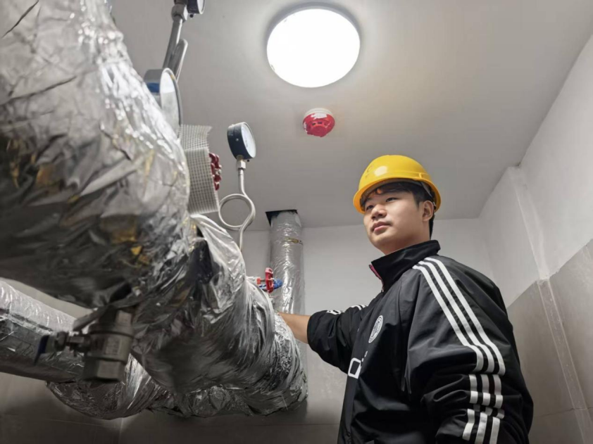 隊員黃家晨是供熱安全防線的“新生力量”。他說:“巡檢多一分細致,安全就多一分保障,守護供熱安全,青年責無旁貸?!弊匀肼氁詠恚鲃永眯菹r間鉆研供熱系統(tǒng)運行規(guī)范與章程,跟隨老師傅穿梭在換熱站、閥門井之間學習巡檢技巧,深耕一線巡檢與故障排查,僅用1個月便熟練掌握巡檢流程和基礎故障排查方法。在一次日常巡檢中,他通過對比歷史數(shù)據,敏銳發(fā)現(xiàn)某換熱站循環(huán)泵電流波動異常,立即上報并協(xié)助技術人員排查,及時避免了設備過熱停機的安全風險,用勤學善思的態(tài)度和扎實肯干的行動,為供熱安全增添了青春保障。